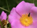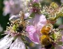 Andrena, forse A. nigroarena, su fiori di rovo in compagnia di A. mellifera. Gola di Lago, 05.06.2024, foto di D. Besomi
