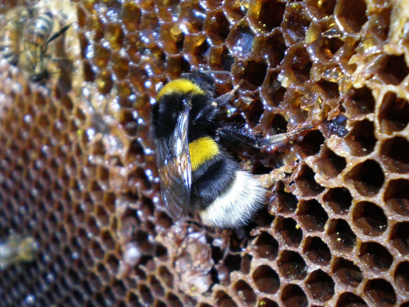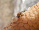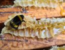 su un favo d'ape con ancora residui di miele, alla fine dell'inverno. Probabilmente una regina