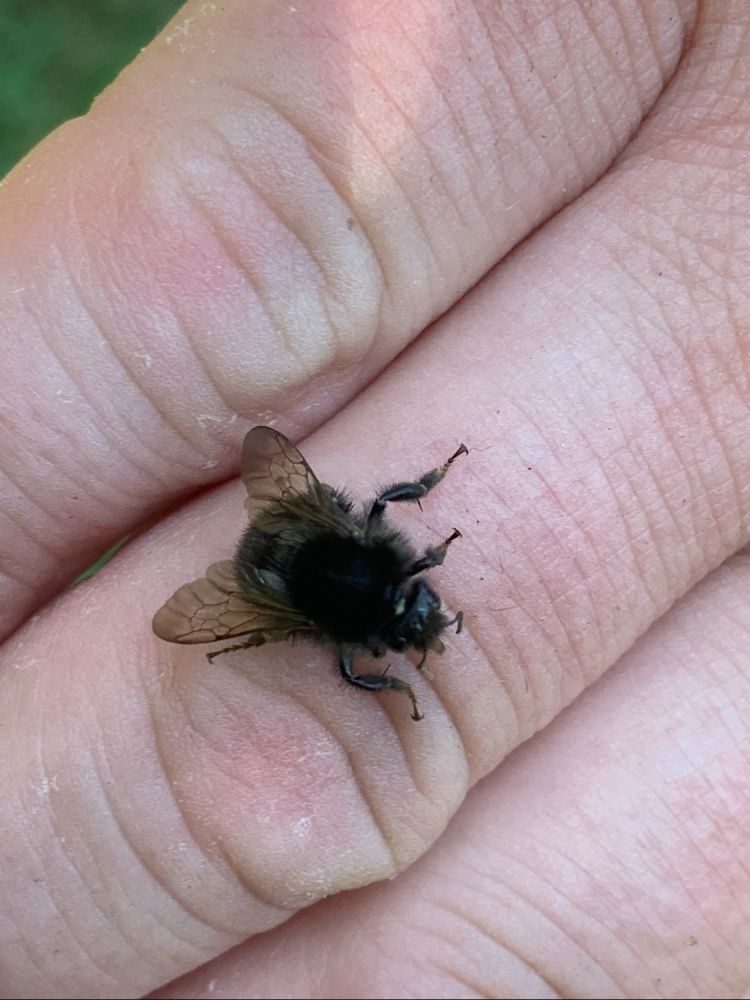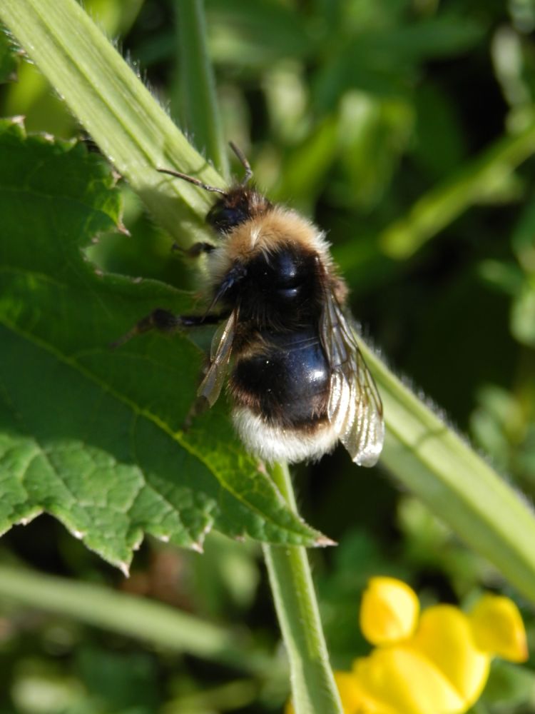 Bombus. La colorazione è compatibile con B. lapidarius, oppure pratorum, soroeensis, e più alto anche wurflenii. Gola di Lago, fine giugno 2024. Foto di D. Besomi